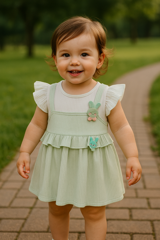 Green and white pinafore dress