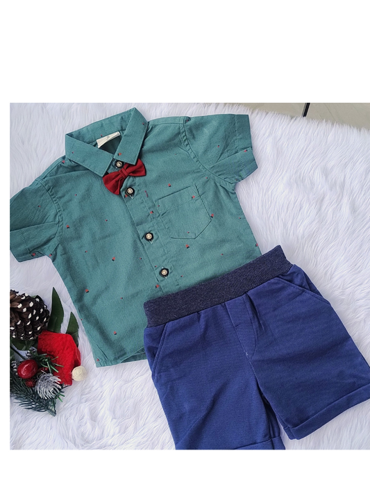 Green shirt with shorts and bow