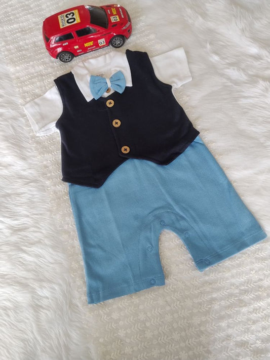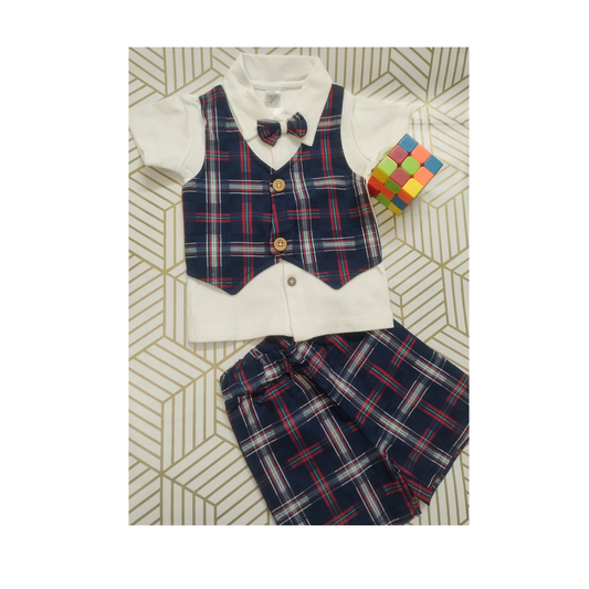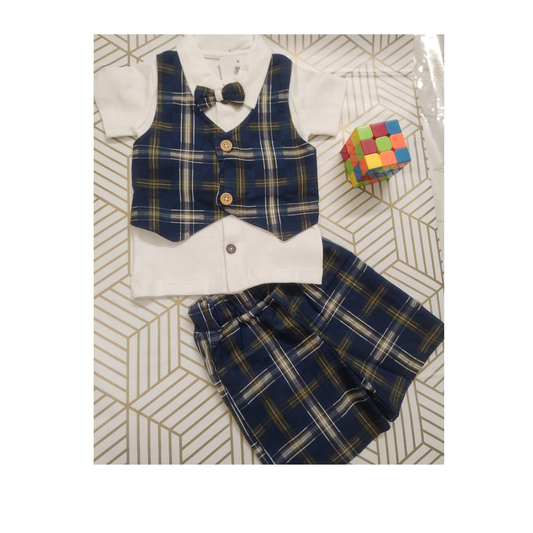 Navyblue checks shirt with waistcoat, shorts and bow