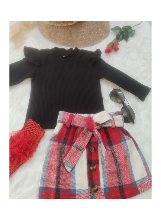 Check Skirt and ruffled Top