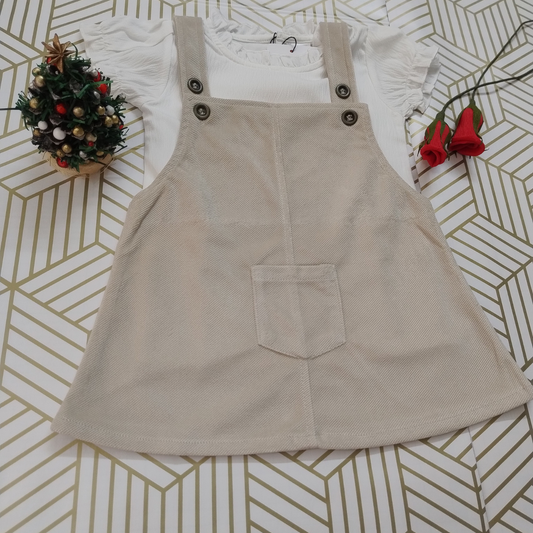 Beige corduroy pinafore dress
