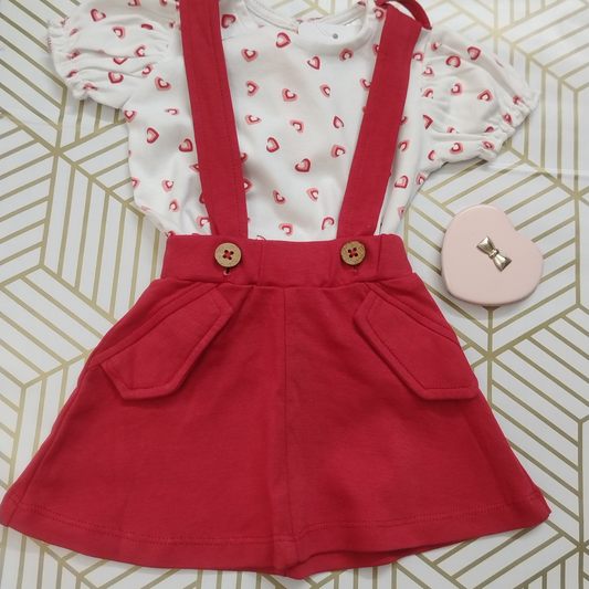 Red and white pinafore dress