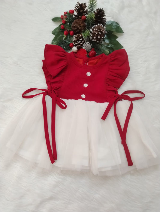Red and white net frock