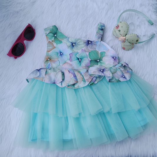 Floral blue party frock