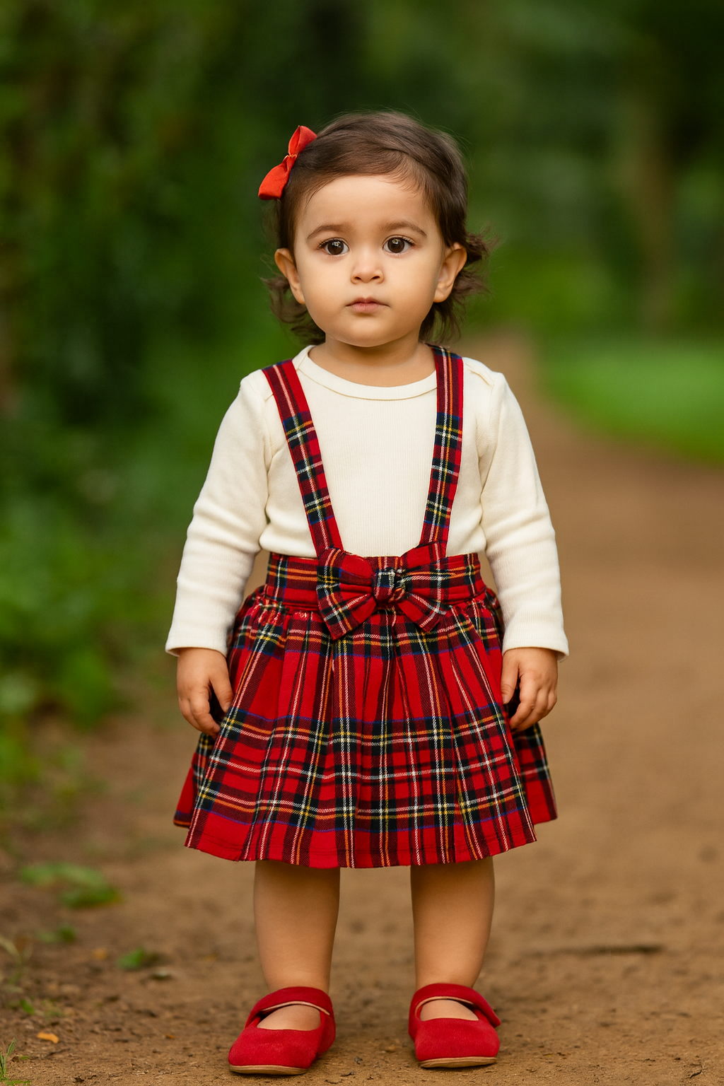 Red and white pinafore dress