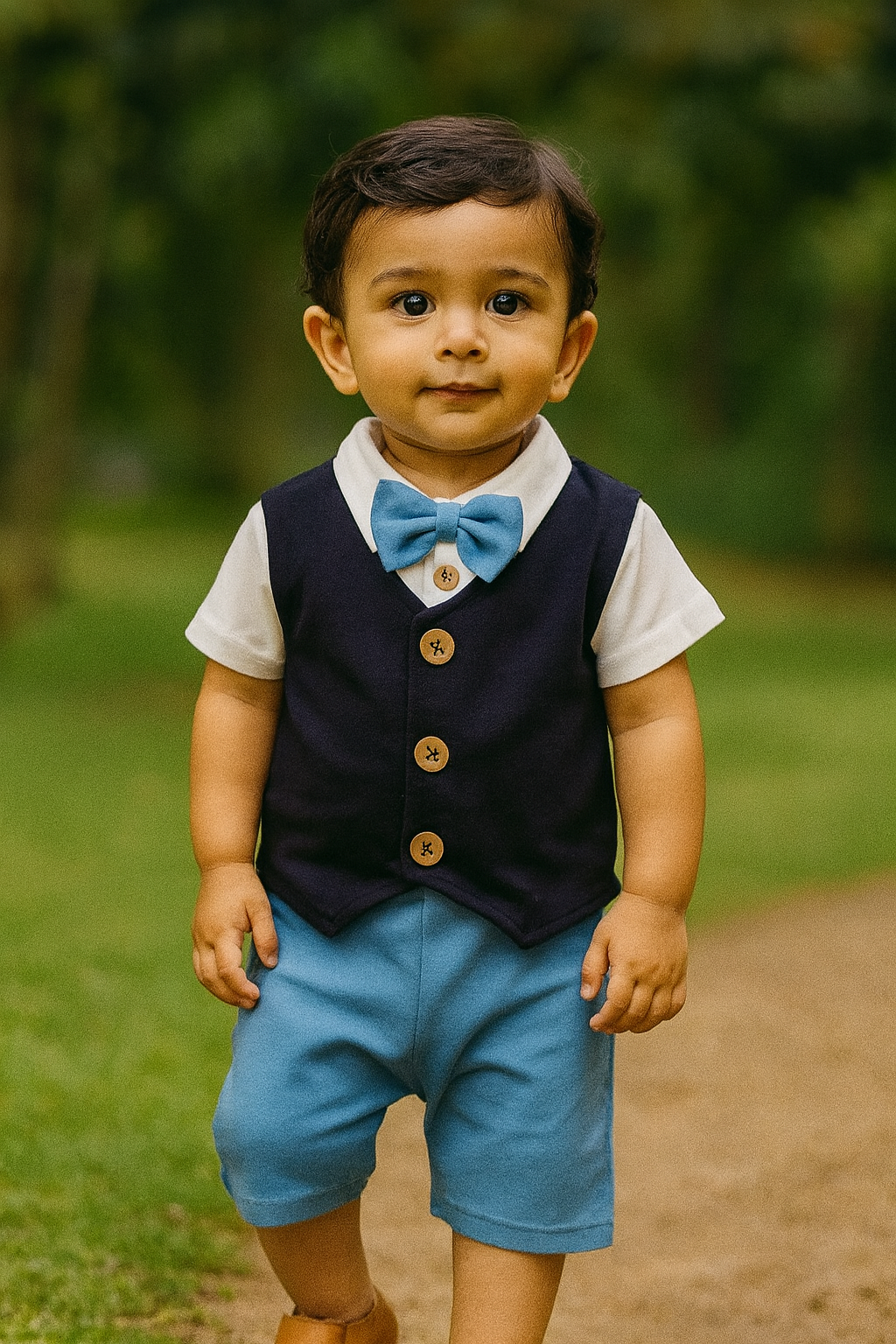 This durable and stylish blue and black dungaree is crafted with 100% cotton, ensuring comfort and flexibility for boys aged 3 months to 2 years. Complete with a charming bow, this dungaree is the perfect addition to any little one's wardrobe.