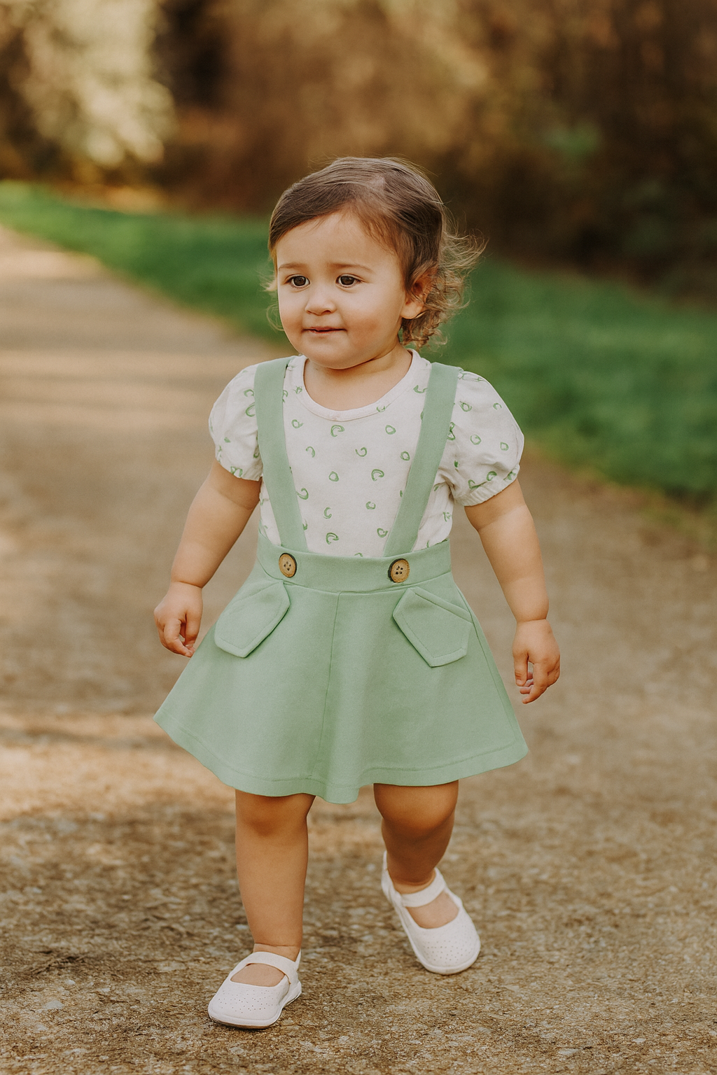 This pure cotton pinafore dress is a must-have for any small girl's wardrobe. The dress features a soft and durable fabric that will keep your little one comfortable all day long. With its classic design and top, this versatile dress is perfect for any occasion. Add a touch of style to your child's wardrobe today!