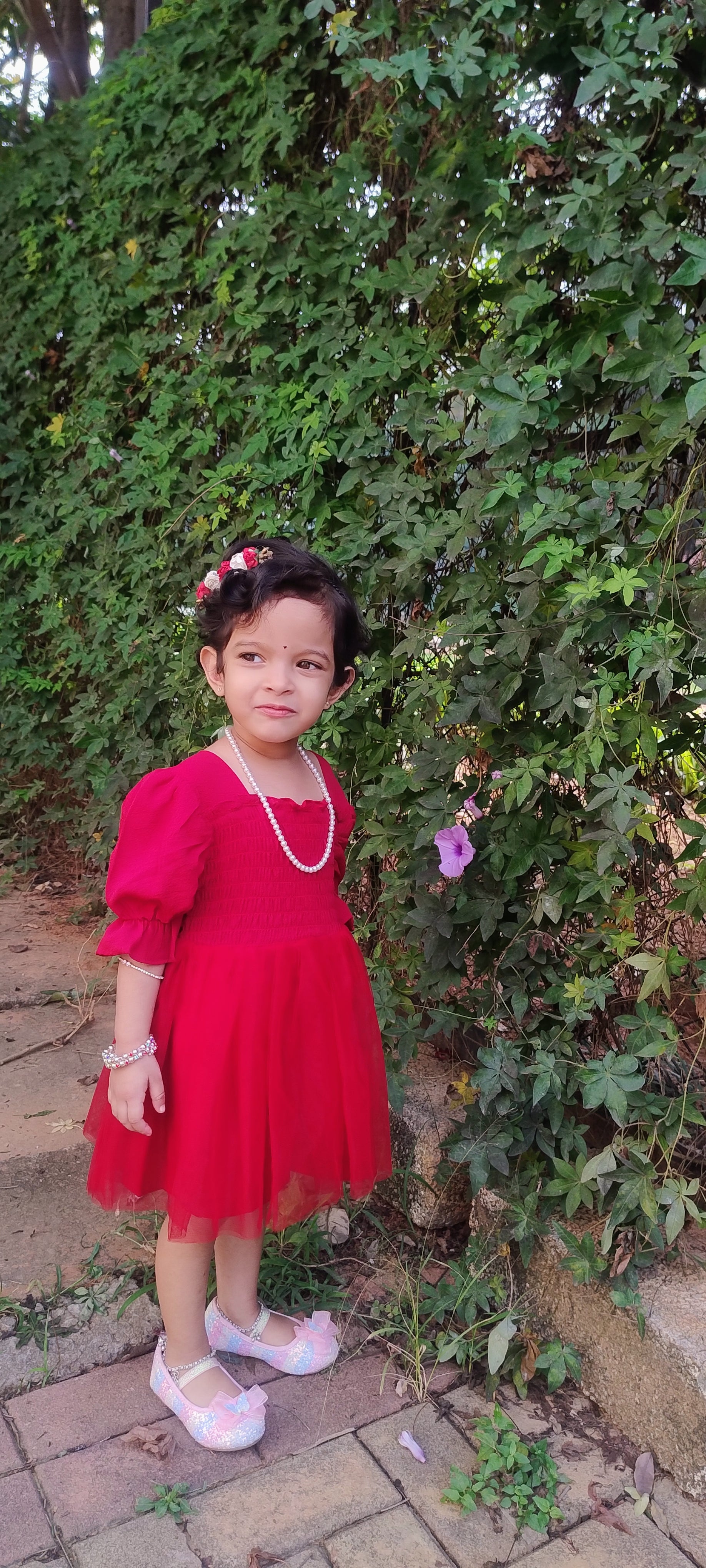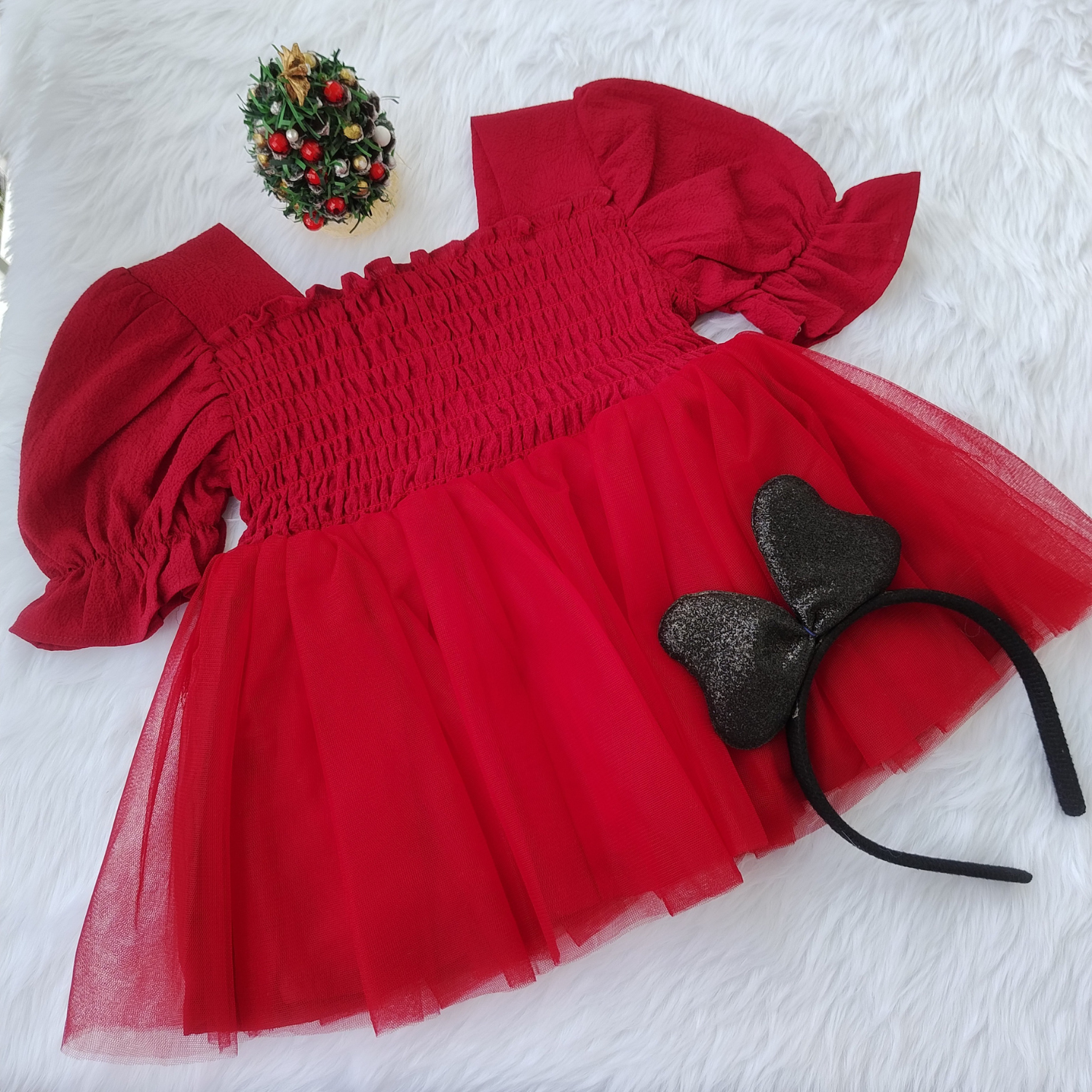 This red partywear frock, made of high-quality net material, is perfect for any special occasion. With its vibrant color and smoking design, your child will stand out in the crowd. Ideal for parties and events, this frock offers both comfort and fashion.