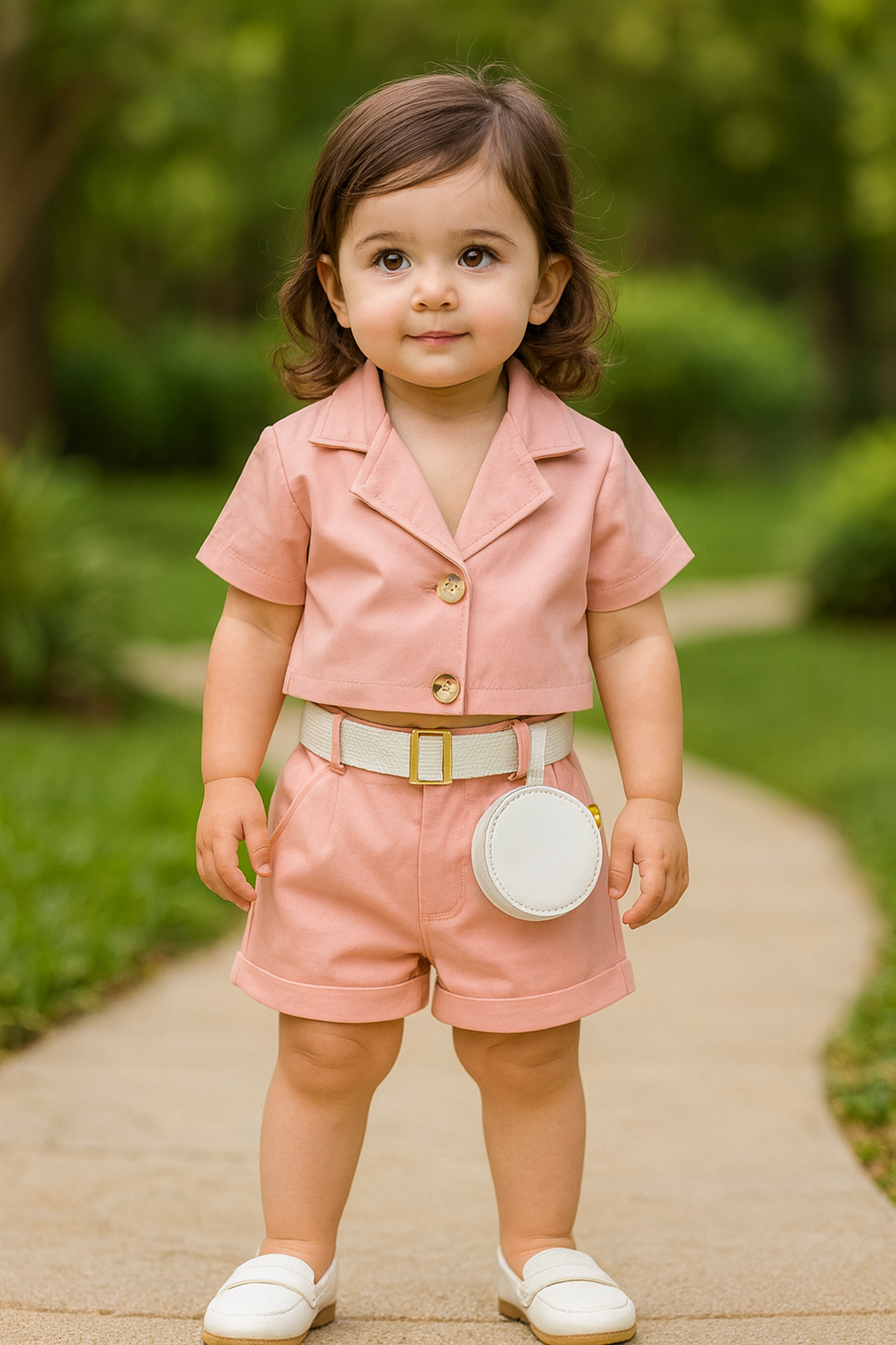 This toddler set includes a pair of comfortable cotton blend shorts and a stylish collared top, complete with a convenient pouch.Made with high-quality materials, your little one will be comfortable and stylish all day long.