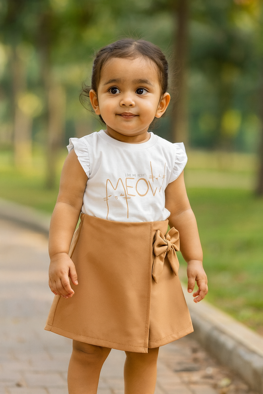 This skirt with attached shorts and top is a perfect outfit for girls aged 1-5 years. The attached shorts provide comfort and coverage, while the sleevless frilled top adds a touch of style. Let your little one move and play freely with this versatile and cute ensemble.